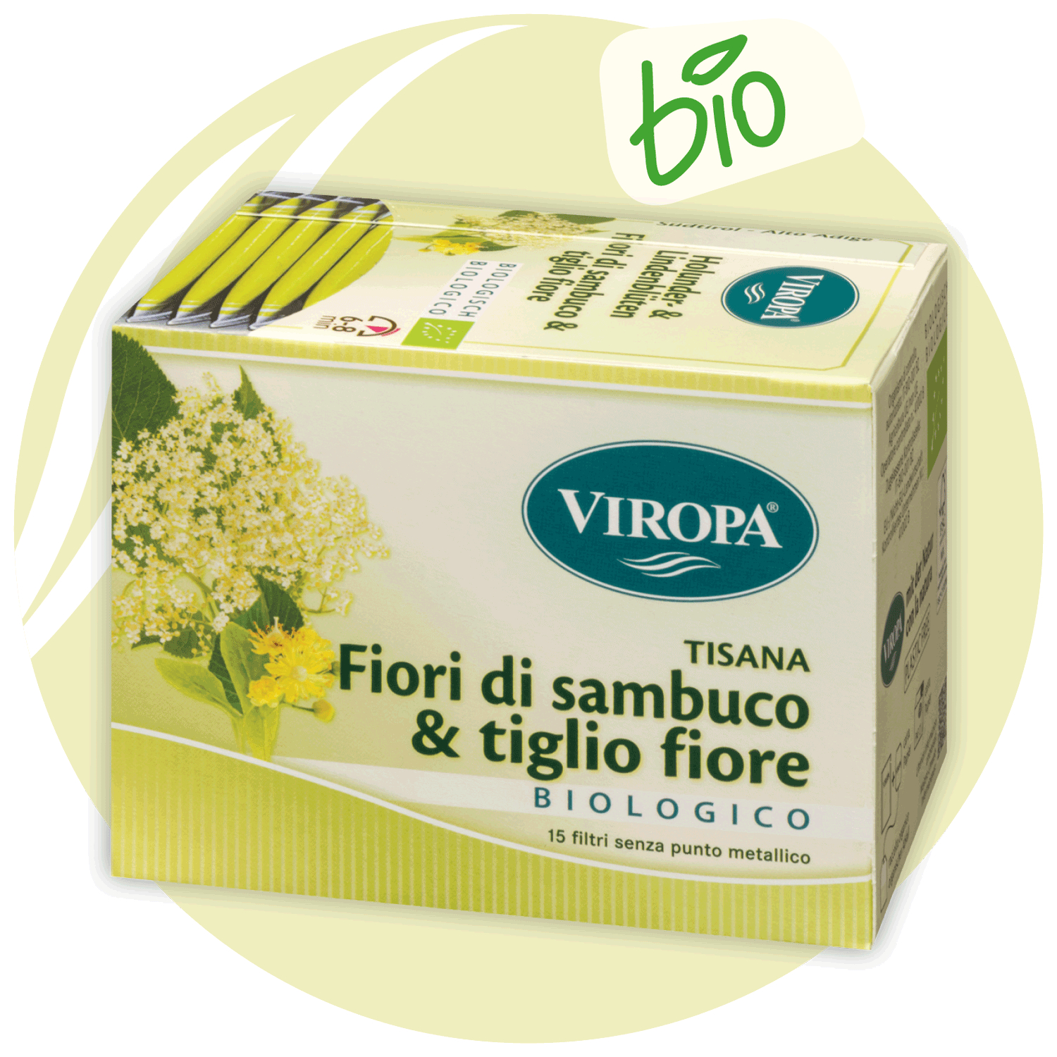 Il sambuco è un arbusto o alberetto frequente nelle boscaglie, boschi freschi e siepi dal mare alla zona submontana e si trovano frequentemente in Alto Adige vicino alle case dei masi. I fiori sono odorosi, e trovano largo impiego nella pratica erboristica domestica. VIROPA Fiori di sambuco Bio può essere consumato a tutte le ore della giornata.Ingredienti:fiori di sambuco 45%, tiglio fiore 45%, erba citronellatutti gli ingredienti da agricoltura biologica controllata.