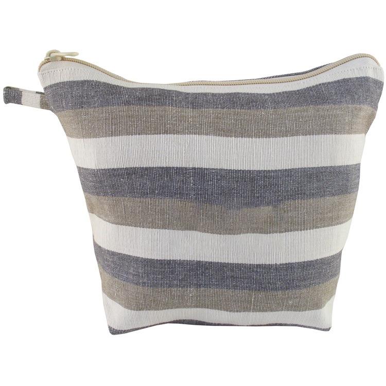 Beauty Case CAPRI misura medium cotone naturale righe larghe grigio – ecru 28cm x 20cm x 10cm