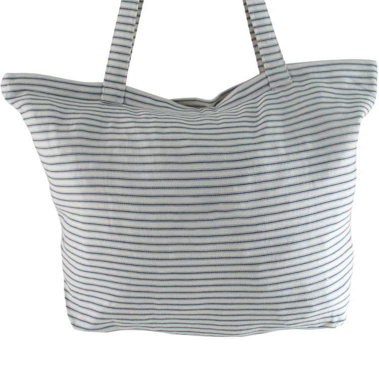 Borsa GALLIPOLI misura large in cotone naturale a righe strette azzurre 49cm x 32cm x 16cm