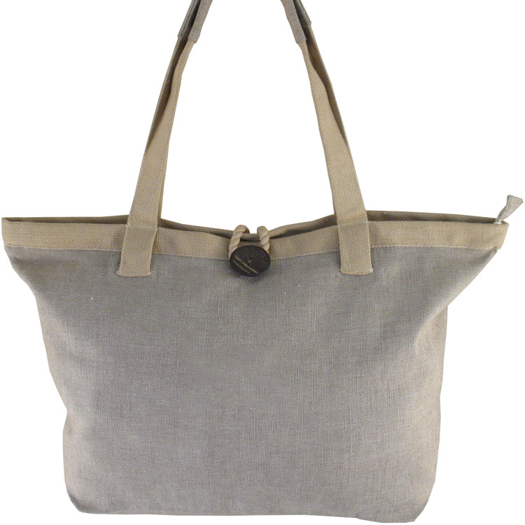 Borsa studio MATERA chiusura zip e bottone + tasca interna Tinta ecru con manici e profilo superiore beige 49cm x 32cm x 16cm