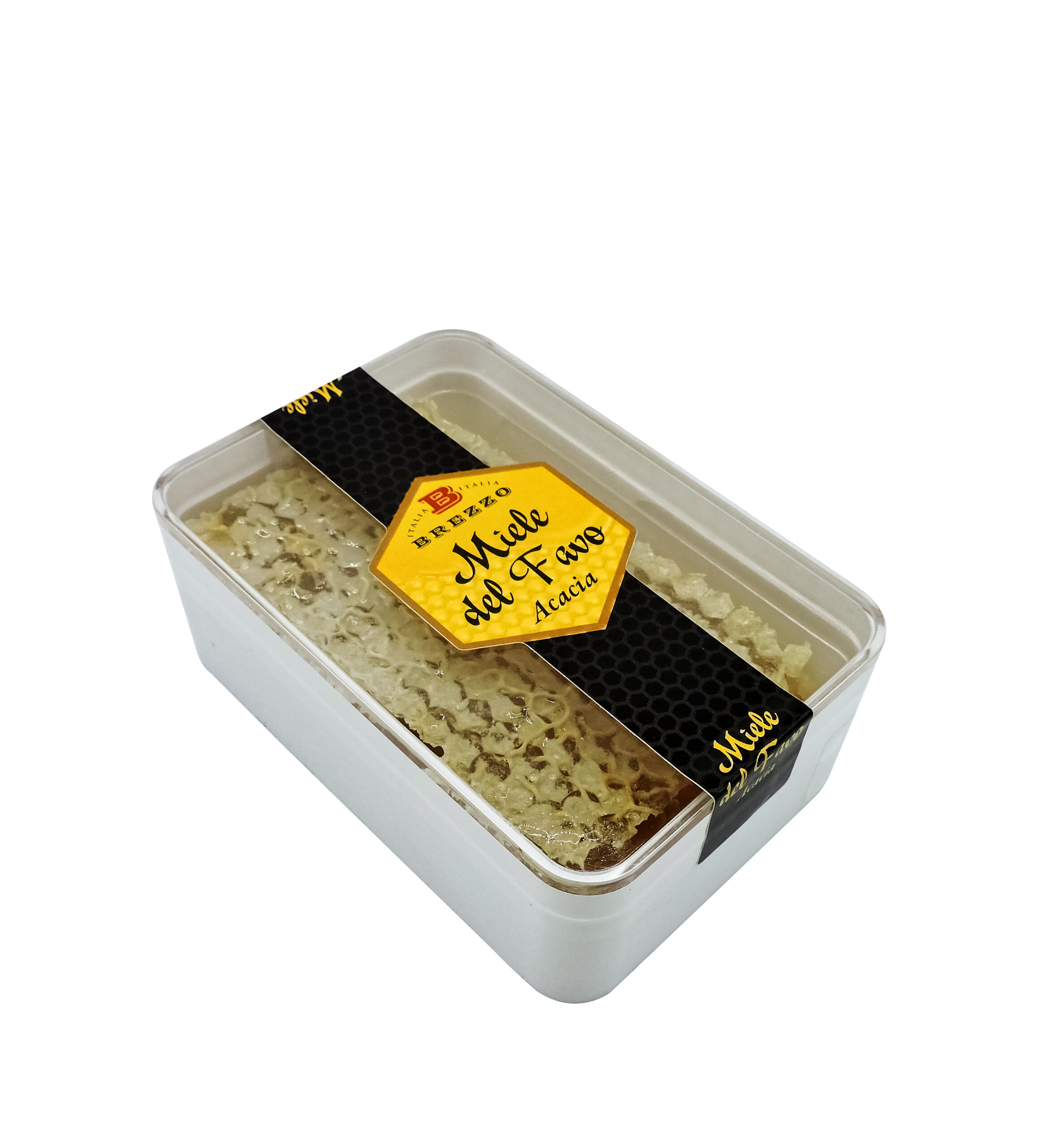 Porzione del favo presentato all’interno di un comodo astuccio di miele di Acacia.