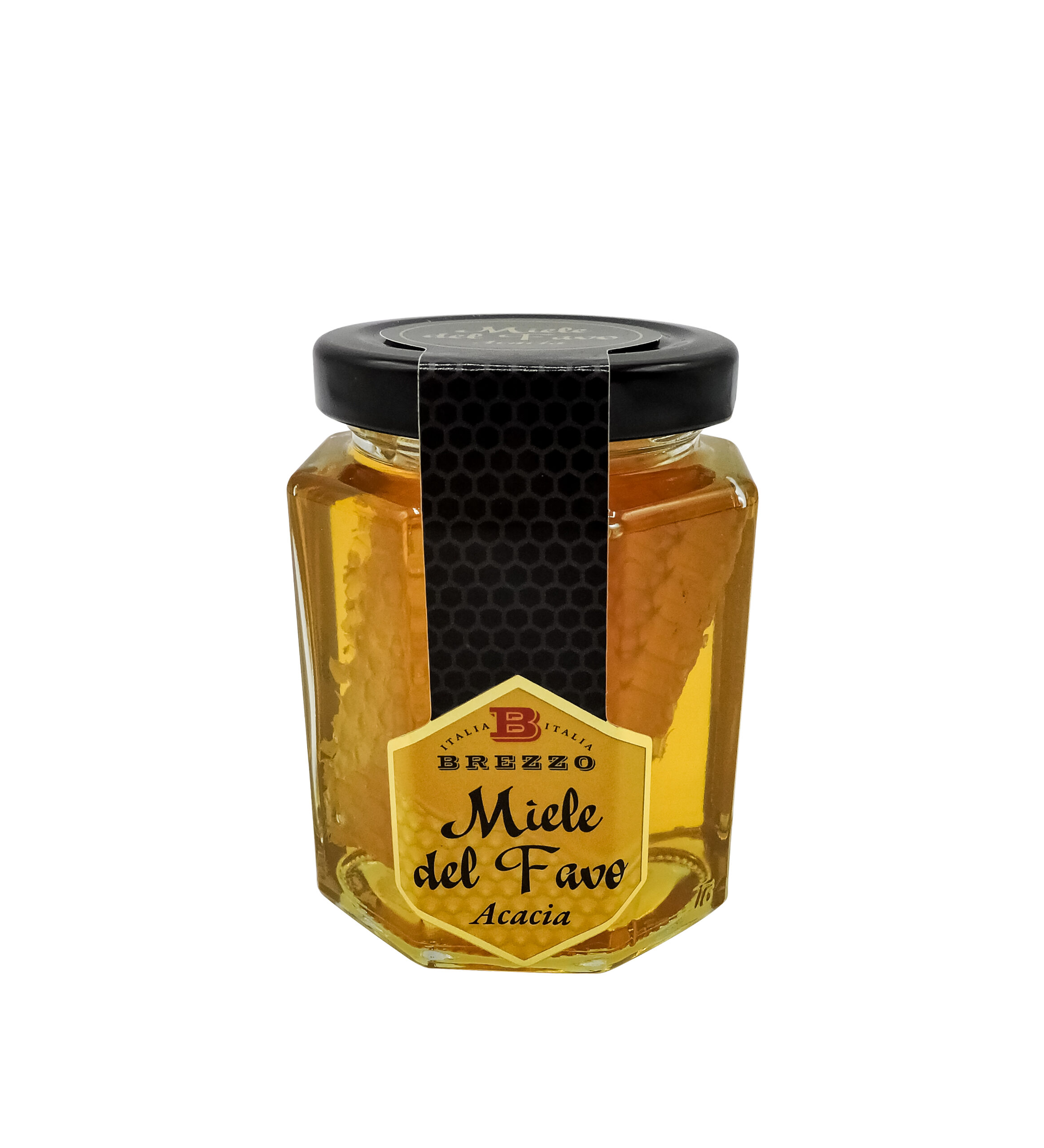 Il favo è un raggruppamento di celle esagonali di cera costruito dalle api per immagazzinare miele e polline. Per dare la possibilità al consumatore di gustare il miele così come si presenta prima di essere smielato abbiamo pensato di immergere un pezzo di questo favo, appositamente sezionato dal telaino, all’interno di un vaso di miele di acacia. Un’occasione davvero straordinaria per assaporare tutta la genuinità del miele così come nasce. La cera è completamente edibile e può essere tranquillamente ingerita succhiando il miele contenuto all’interno.