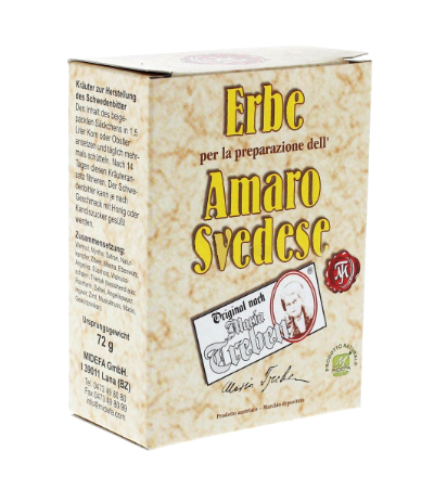 Le erbe svedesi contuse sono l’indispensabile base per la preparazione casalinga dell’omonimo “AMARO SVEDESE”, seguendo scrupolosamente la ricetta indicata da Maria Treben nel suo libro “La salute dalla farmacia del Signore”.